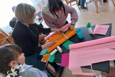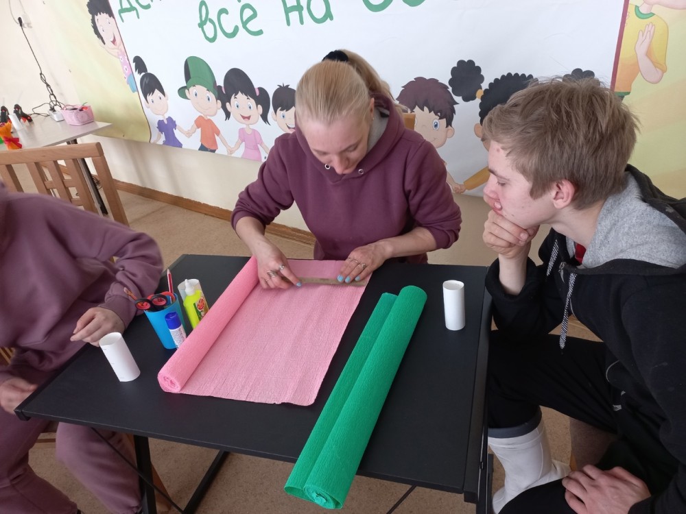 В преддверии праздника, 06.03.2023г. ребята дневного отделения и отделения профилактики, совместно с мамами и бабушками, приняли участие в мастер- классе, по изготовлению букета из гофрированной бумаги. С большим интересом ребята мастерили свои поделки, а мамы бабушки им в этом активно помогали!
