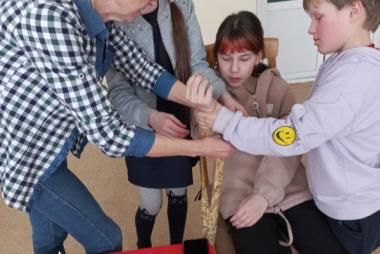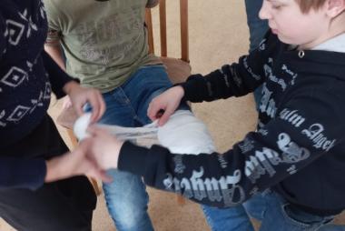 Участники учились бинтовать ушибленные и поражённые места, обрабатывать раны.