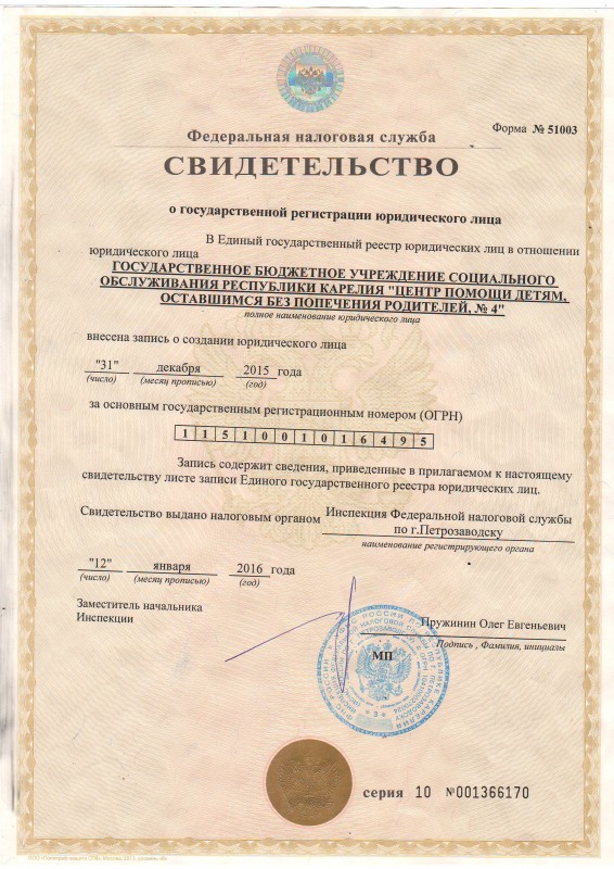 Государственное бюджетное учреждение социального обслуживания Республики Карелия «Центр помощи детям, оставшимся без попечения родителей, №4»